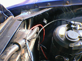 the fusible link bracket. One lead went over the engine following the fuel lines to the